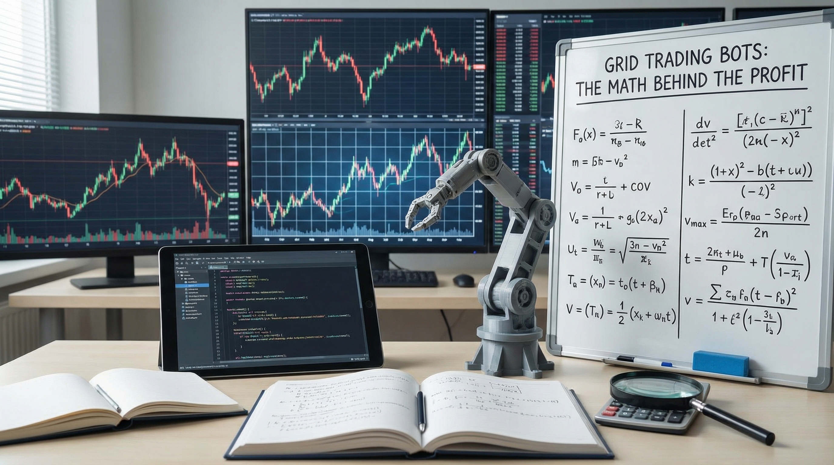 An in-depth explanation of grid trading strategies, including the mathematical principles behind automated trading bots that profit from market volatility.